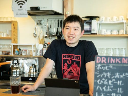 村岡 悠司さん(yado & kissa UGO HUB オーナー) 2017年に羽後町へ移住。その後、町内中心部の空き物件を改修し、2020年4月に宿泊・飲食・シェアスペースサービスの機能を備えた複合空間「yado & kissa UGO HUB」をオープンしました。