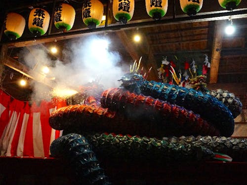 ● 塩祓い(15分) 女性二人が平安時代風の装束を身につけ神殿で雅に舞う、清めの儀式舞。 ● 道返し(40分) 「ちがえし」と読みます。 世界中を旅して悪さをした鬼が、神様によって改心し、平和が取り戻される話。 ● 鍾馗(40分) 「しょうき」と読みます。大陸からやってきた疫神を退治する話で、コロナ収束も願う演目。 ● 八岐大蛇(40分) 「やまたのおろち」と読みます。 須佐之男命が八つの頭と尾を持つ大蛇を退治する有名な話。