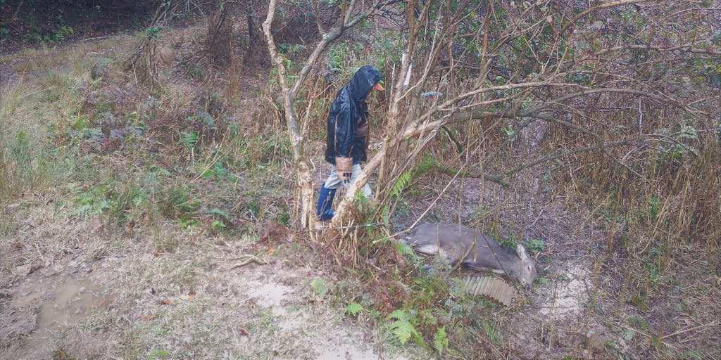 くくり罠猟の現場までは、足跡を観察しながら歩きます。シカの行動パターンの見極め方や、狩猟する際に工夫していることなど、猟師ならではの体験談を聞きながら、アニマルトラッキング。運よく獲物が罠にかかっていれば、実際に捌くところまで見学できます。 ※苦手な方はご遠慮ください。