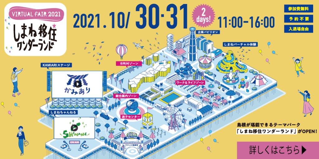 2021/10/31大規模オンラインイベント『しまね移住ワンダーランド』 今年は10⽉30・31⽇(⼟・⽇)の2日間で開催します!!