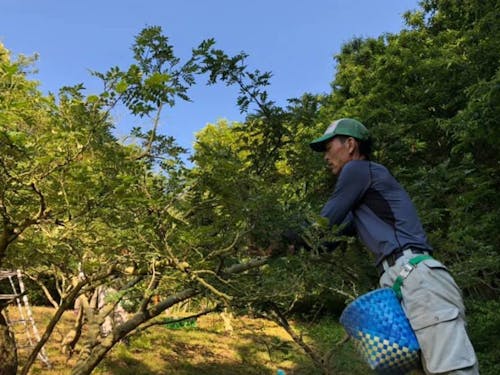 この体験では、季節に合わせて山椒栽培のお仕事を体験していただきます。草刈りといった日々の仕事から、山椒の実の手摘み。山椒の選別作業や、土日祝日のみ併設しているカフェ「田舎cafe かんじゃ」での体験まで、山椒とともに生きる永岡さんの仕事とくらしを体験してください。