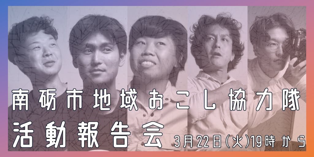 2022/03/22令和3年度南砺市地域おこし協力隊の活動報告会を行ないます! 都市部から南砺市へ移住し、さまざまなミッションに取り組んできた地域おこし協力隊の1年間の総まとめをぜひお聞きくださいませ(°▽°)