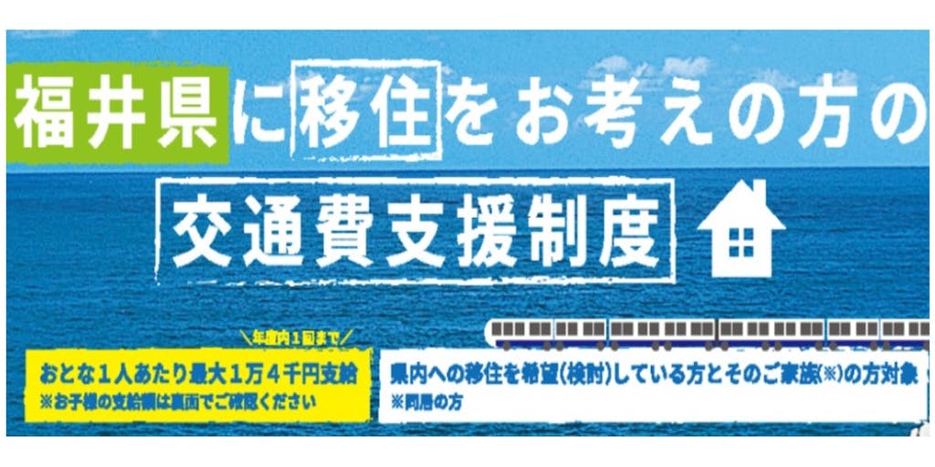 2022/02/24こんにちは! 福井県では、福井県への移住をお考えの方の交通費支援制度を行っています! しごと探しや住まい探し、お試し移住など、移住前の準備にご活用ください!