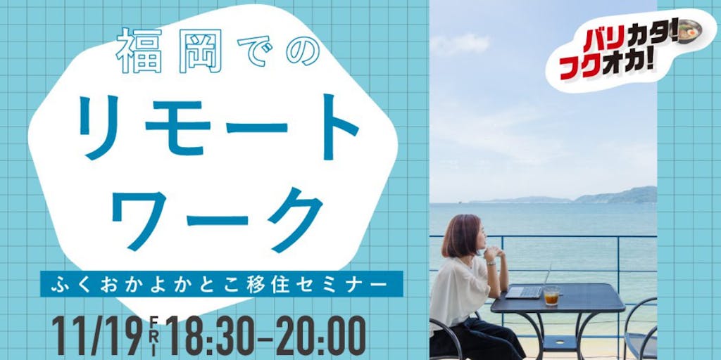 第6回:10月23日(土)14:00〜15:30「福岡ではたらく~転職篇~」(終了) 第7回:11月19日(金)18:30〜20:00「福岡ではたらく~リモートワーク篇~」 第8回:12月16日(木)18:30〜20:00「福岡ではたらく~起業篇~」