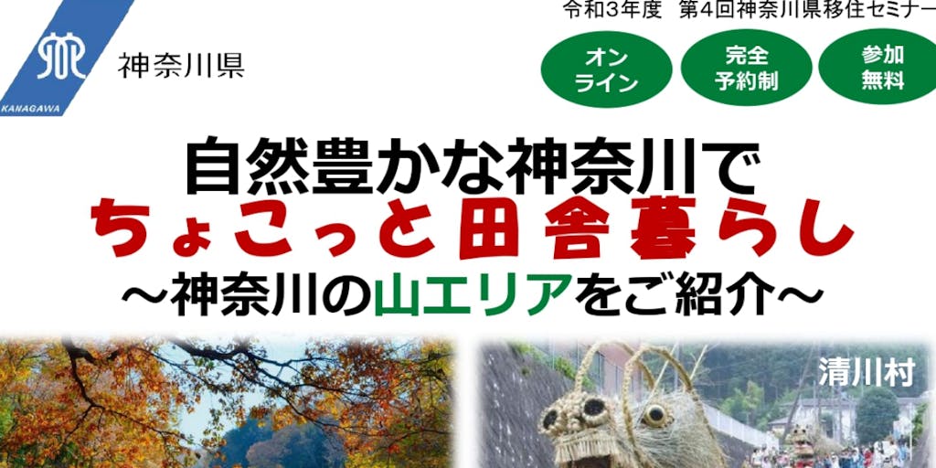 【11/14(日)オンライン移住セミナー開催】自然豊かな神奈川でちょこっと田舎暮らし ~神奈川の山エリアをご紹介~