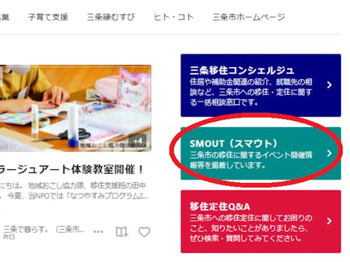 SMOUTには、合同企業説明会のような、「三条で暮らす。」でも掲載しているイベント情報のほかにも、三条市内で地域づくり活動を行う団体等の人材募集や移住体験などの情報も随時掲載していますので、時々覗いてみてください!