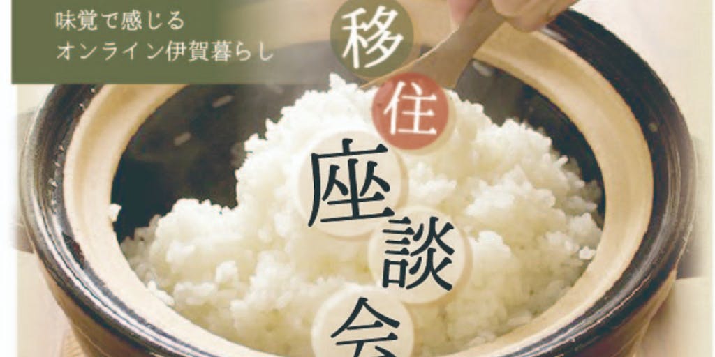 ・定員:15名 ・スケジュール: 19:00 挨拶・伊賀市紹介 19:10 先輩移住者の体験談 19:30 伊賀米や伊賀牛しぐれ煮を食べながら座談会 ※事前に郵送した伊賀米を19:30に炊き上がるよう準備していただきます。 20:20 アンケート 20:30 解散