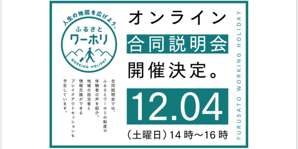 ⭐️オンライン合同説明会12月4日開催⭐️ 申込はこちら https://furusato-work.jp/sessionlist/fair-24630/