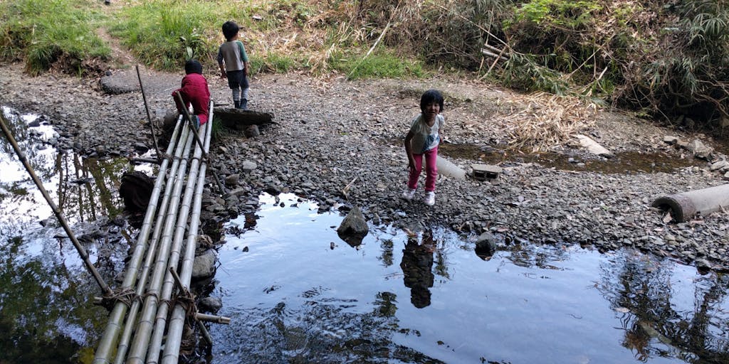 今回のツアーでイチ押ししたいのは、【田んぼでアホイ!】。 変わった名前ですが、移住者主催の自然遊びの場です。 農薬を使わない田んぼの周りは、子供が楽しめるものがいっぱい!
