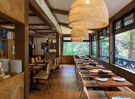 愛媛県で最も人口の少ない町、松野町。通称「森の国」でわずか10室のロッジを運営しています。四万十川源流である目黒川の上流の滑床渓谷のほとりにあり、周囲を豊かな自然に囲まれています。日々の喧騒を忘れ、ゆったりとした時間を過ごしたい方にぴったりです。 宿泊中は、地元食材をふんだんに使用した「selvaggio」でのお食事や、星空観察などを行うナイトツアー、人好きの看板猫「なめ」とのふれあいも楽しむことができます。