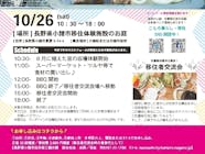 ・解散場所:小諸駅または小諸市役所 ・スケジュール: 2019年10月26日(土) 10:30 小諸市移住体験施設の庭にて、野菜の収穫体験 11:00 スーパーマーケット(ツルヤ)にてBBQ食材の買い出し 12:00 BBQ開始 15:00 BBQ終了ー移住者交流会会場へ移動 16:00 移住者交流会開始 18:00 移住者交流会終了