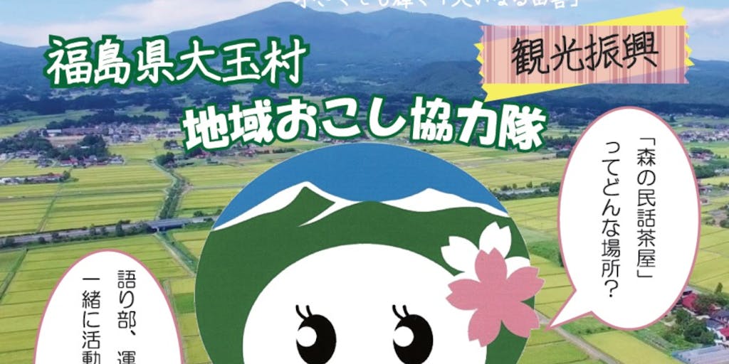 大玉村は福島県のほぼ中央部に位置する人口約9,000人の自然豊かな村です。 日本百名山としても有名な安達太良山の麓にあり、豊かな自然と恵まれた水資源でお米や野菜、果物など美味しい農畜産物が生産されています。また、大玉村内では「いぐね(屋敷林)」に囲まれた集落が各地で見られ、シンボル的な景観となっており、伝統文化の継承なども評価され「日本で最も美しい村連合」に加盟しています。このような村ではありますが、国道4号線と東北自動車道が村内を貫通し、近隣市町村のベッドタウンとしても発展しているなど、福島県内でも数少ない人口が増加している自治体であり、人口の占める子どもの割合は県内トップという特徴のある村です。 一方では、スタッフの高齢化に伴い、大玉村の観光スポット「森の民話茶屋」の継承と運営が喫緊の課題となっております。そこで、「森の民話茶屋」の継承と運営を最優先に地域の方と一緒に魅力ある持続可能な地域づくりを目指すことを目的に、「地域おこし協力隊」の隊員を募集します。