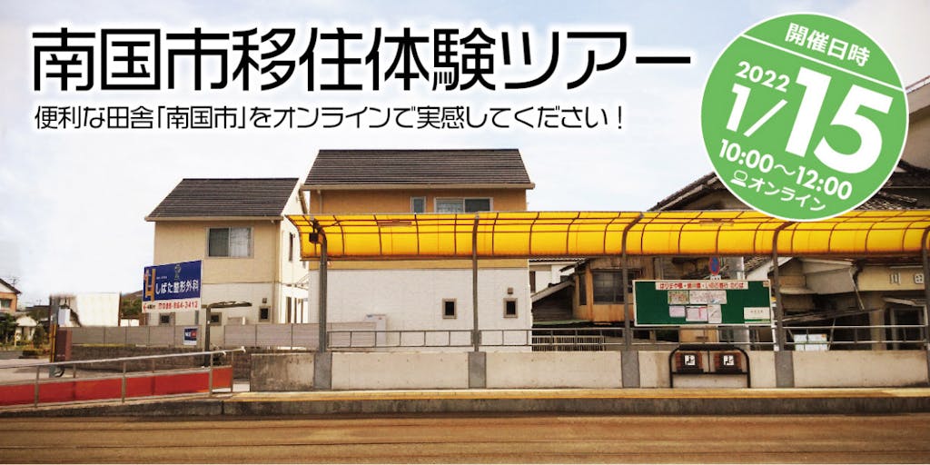 2022/01/13南国市は生活に欠かせない、交通機関が整った市街地を中心に北はのどかな山間部、南は広大な太平洋と接する海岸部と、まちの周りに海・山・川が揃った自然を感じながら暮らせる「便利な田舎」です。 この度、2022年1月15日(土)にオンラインにて南国市の移住体験ツアーを開催します。南国市の住まい、暮らしを中心とした内容になっておりますので、ご興味のある方はぜひ、南国市オンライン移住体験ツアーにご参加下さい。