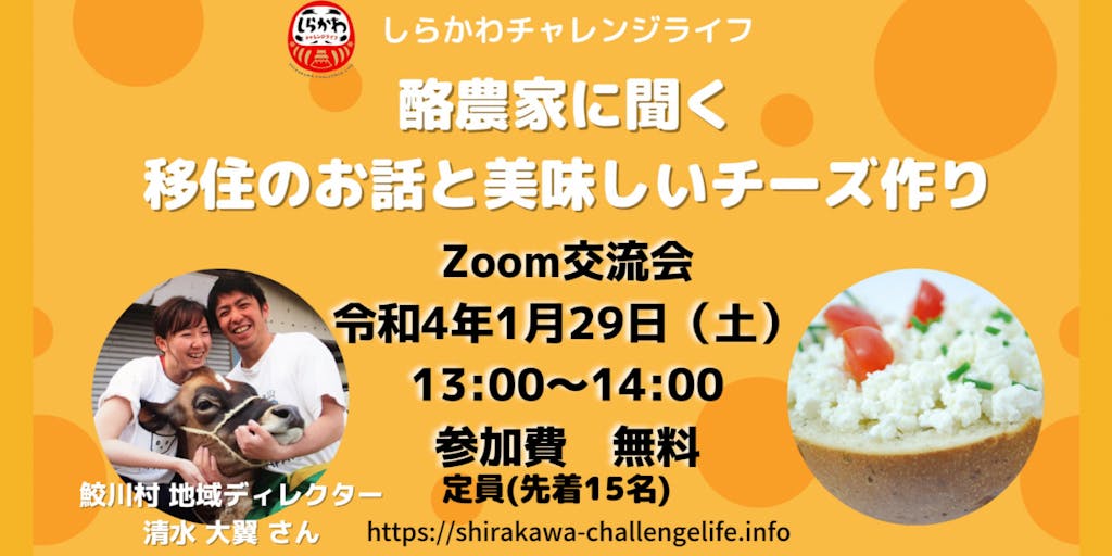 【1/29(土)開催!オンライン交流会@鮫川村 】酪農家に聞く移住のお話と美味しいチーズ作り