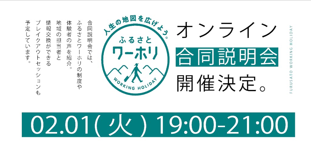 2022/02/01経過レポートが追加されました!「【明日19時〜】ふるさとワーホリ説明会では自治体の方から直接お話がうかがえます!」