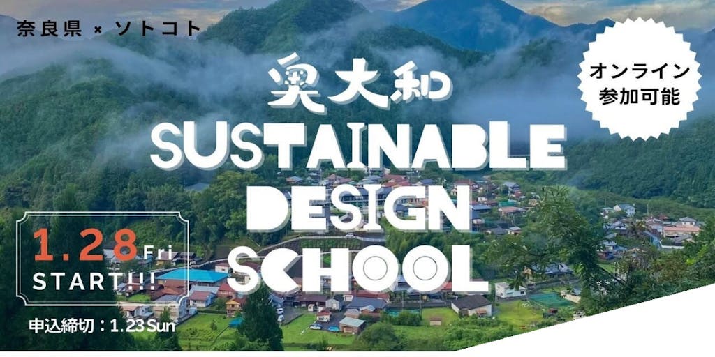 ・定員:30名 ・スケジュール: 【講座日時】 ◆第1回 1月28日(金)19:30~21:30 @オンライン開催 「奈良県内外の事例から、サスティナビリティを学ぶ」 ◆第2回 2月11日(金・祝)〜13日(日) @現地 / 動画配信 「奈良県下北山村でのフィールドワーク」