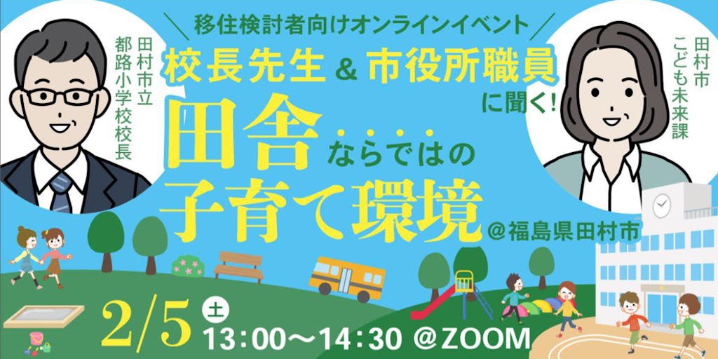 【福島県田村市オンライントークイベント】校長先生&市役所職員に聞く!田舎ならではの子育て環境@福島県田村市 2/5(土)13時開催