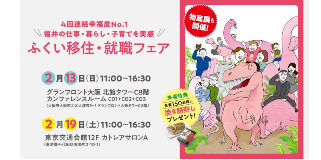 福井県の仕事、暮らし、子育てを体感できるイベントを開催します! 2/13(日)は大阪、2/19(土)は東京で開催です!