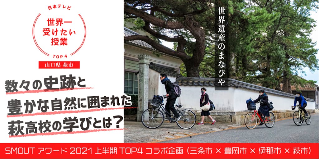 もっともっと知ってほしいことが一杯!!ということで世界一受けたい授業の続編的にライブ配信企画を4地域共同でたちあげました。 新潟県三条市、兵庫県豊岡市、長野県伊那市、山口県萩市、のSMOUTアワード上位4チームがそれぞれのマチについて、各地域の尖ったゲストスピーカーも交えて、熱く語ります。