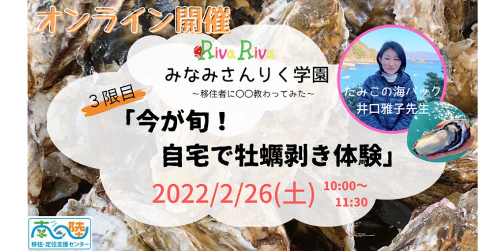 【オンライン開催】RivaRivaみなみさんりく学園~移住者に〇〇教わってみた~3限目「今が旬!自宅で牡蠣剥き体験」井口雅子先生