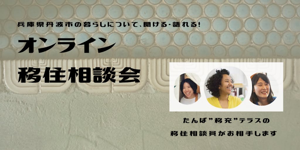 オンライン会議システムZoomを利用しますので、参加者には当日のアクセス情報をお知らせします。お申し込みをご希望の方には、以下たんば”移充”テラスまで ①お名前 ②メールアドレス ③参加内容(個別相談OR説明会、個別相談の場合は時間帯も)をメッセージください。