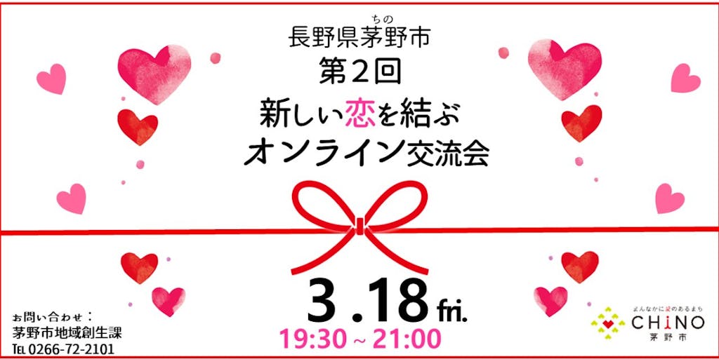 コロナ禍で新しい出会いの機会が失われています。新生活が始まる春!オンラインでの恋活で新しい出会いを見つけてみませんか?長野県茅野市がコロナ禍での春の恋活を応援します。