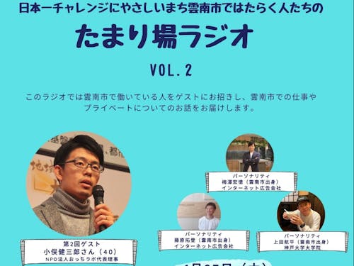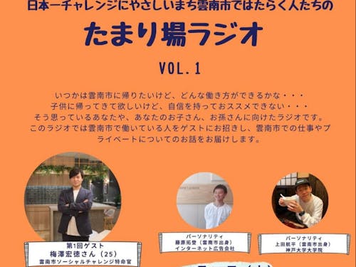 雲南市出身の20代若者が企画するこのラジオ! 毎回ゲストが違うため、色々な働き方、暮らし方の情報収集が可能です♪