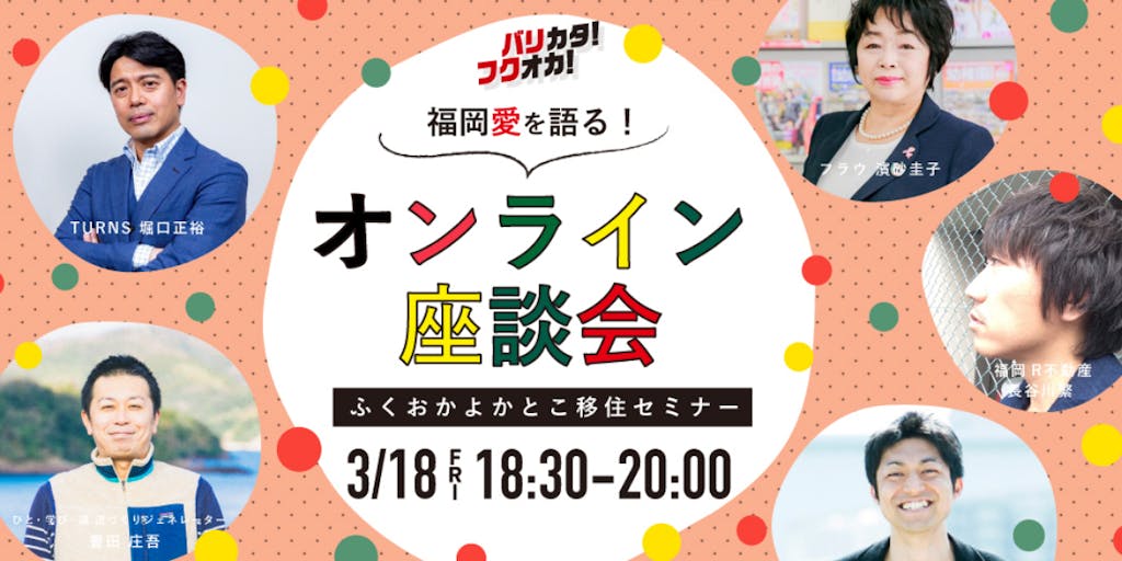毎月実施してきたオンラインイベント、ついに最終回を迎えます! 本セミナーでは、福岡での「住まい」「子育て」「職」「地域おこし協力隊」「魅力」などをテーマに、各分野で活躍されているゲストをお迎えし、10か月にわたり楽しくて刺激的なお話を伺ってきました。