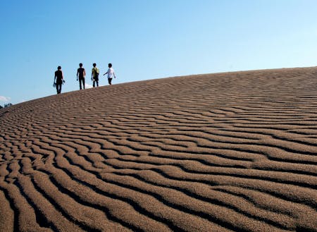 風が作り出す波模様「風紋」や1年を通して様々な風景を楽しむことができる鳥取砂丘、「麒麟獅子舞」が行われる宇部神社や鳥取東照宮といった歴史的建造物も多くあります。 他にも全国的に珍しい、鳥取駅近辺の街中に湧く「鳥取温泉」をはじめ、市内に複数の温泉街があり地元の人や観光客を癒しています。