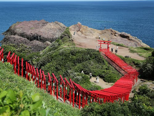 赤い鳥居、青い海、緑の大地のコントラストが美しい、元乃隅神社。 2015年にアメリカのテレビ局・CNNが発表した「日本で最も美しい場所31」のひとつに選出され、 世界も注目する絶景が自慢の神社です。 高台から海に向かって連なる朱塗りの鳥居は、パワースポットとして大人気。 SNS映えも抜群で、個人的な経験ではありますが、 「一生に一度、行ってみたいんです!」と沢山のコメントが入ることも☆