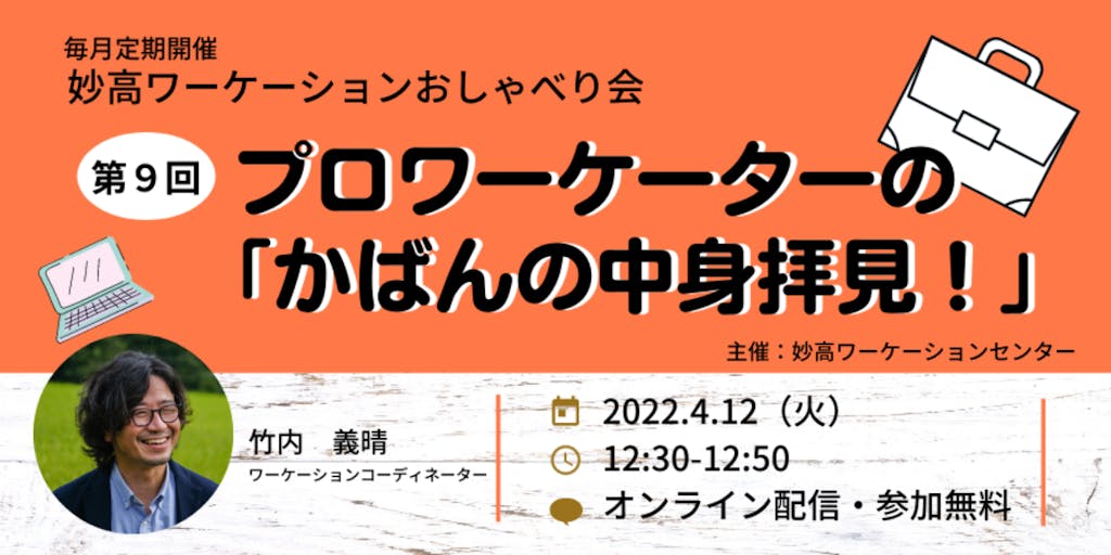 2022/04/12毎月1回、妙高ワーケーションセンター ワーケーションコーディネーターの竹内が語る、オンラインおしゃべり会。