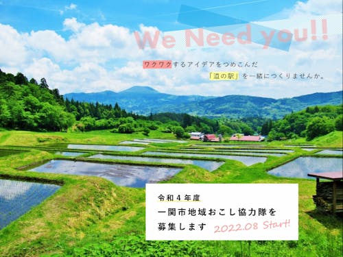 2022/05/17一関市大東町に整備する新たな「道の駅」のオープンに向けてオールマイティに活躍してくれる地域おこし協力隊を募集しています。市と連携して整備計画を進めながら、地域住民との活動などを通じて、ニーズ調査や商品開発、イベントの企画などマルチに活動していただきます。ワクワクするアイデアをつめこんだ「道の駅」を一緒につくりませんか。