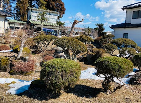 紅葉や松の植えられた広大な庭に、3棟の木造2階建て3LDK(延べ床面積85平方メートル)の建物がならび、そのうち1棟が短期滞在ができるお試し住宅として貸し出されています。 周囲は里山に囲まれ、のどかな風景のなか、静かな時間が流れます。