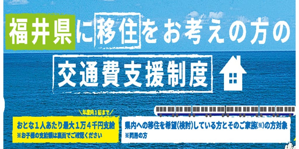 2022/10/20こんにちは! 福井県では、福井県への移住をお考えの方の交通費支援制度を行っています! しごと探しや住まい探し、お試し移住など、移住前の準備にご活用ください!