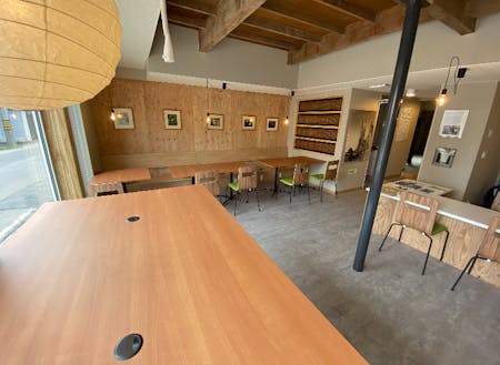 コワーキングスペースは、フリースペース、仕切りのあるプライベートスペース、モニター付きの会議等ができるミーティングスペースで構成されています。 施設は一部を除き無料でご利用いただけます!