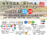日時:2022年4月17日(日) 10:00~12:00 集合場所:道の駅裏の芝生広場(https://goo.gl/maps/TqQ17PAd9Gj9dEx5A) 当日スケジュール ■ 9:45 受付 ■10:00 作業内容の説明 ■10:05 清掃活動開始 ■12:00 終了・解散 ・参加される方は直接現地までお越し下さい ・雨天時は中止します 中止の場合は当日8:00ごろに道の駅インスタグラムでお知らせします。こちら▷https://www.instagram.com/michinoeki.tamagawa/ ・軍手や清掃道具などお持ちの方はご持参ください この清掃活動は、営業再開前に温泉周辺をキレイにして営業再開後に多くのお客様に気持ちよく温泉を楽しんで頂くために実施します。 ご協力いただいた方には参加特典(無料入浴券)も準備してますので、ぜひお気軽にご参加ください。 多くの方のご参加をお待ちしております!