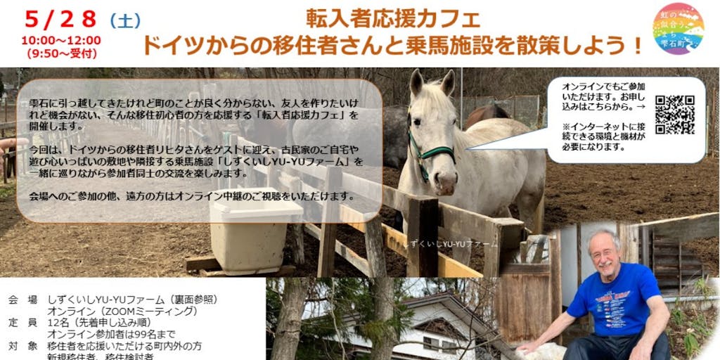 ・馬や動物の好きな人 ・外国人移住者に興味のある人 ・最近、雫石に移住して来た人に興味のある方