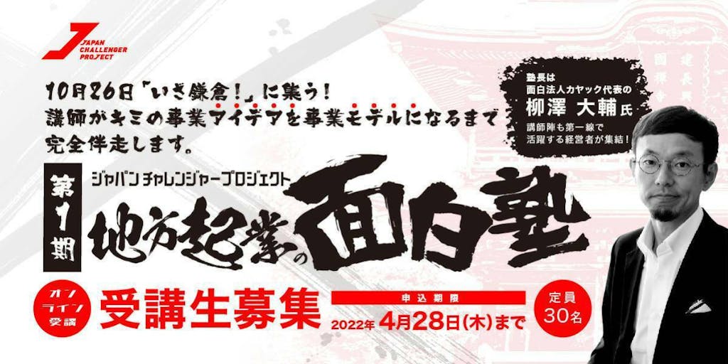 【お試し受講可能!】地域起業家のためのオンラインスクール 地方起業の面白塾開講!