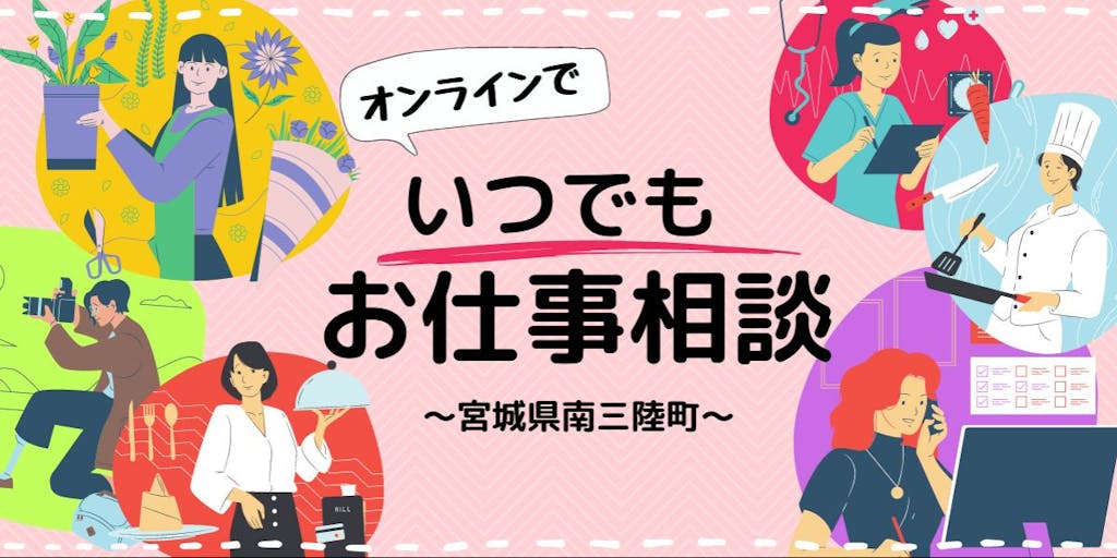 【予約の流れ】 ご予約希望の方は「応募したい」または「興味ある」をクリック。 当センターより相談可能日時をご連絡させていただきます。 ↓ ご予約が確定したらメッセージでzoomのURLを送ります。 ※簡単なアンケートへのご協力もよろしくお願いいたします。 ↓ 当日、ご予約時間になったらメッセージで送ったURLよりzoomミーティングに入室してください。 ▼お仕事についてのご相談だけでなく、移住先の候補地として南三陸町の情報を収集したい方・とりあえず話を聞いてみたい方などももちろんOKです! お気軽にご相談ください~!