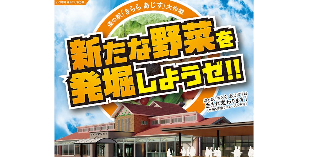 【山口市地域おこし協力隊】新たなウリになる野菜を発掘して、道の駅「きらら あじす」を再生する地域おこし協力隊を大募集!