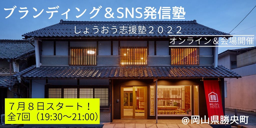 そこで、岡山県勝央町(しょうおうちょう)のまちづくり団体 「一般社団法人しょうおう志援協会」は【ブランディング&SNS発信塾】を開催します。