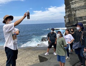 壮大な自然の芸術品「須佐ホルンフェルス」のある海でケンサキイカにふれる!