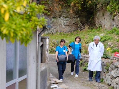 それを下支えしているのが、安定した医療サービス。 島で唯一の医療機関である海士診療所では、一般診療はもちろん、往診、訪問看護、訪問リハビリテーション、在宅医療に加え、島内の福祉法人の施設回診、学校検診なども担い、島民の生活を支えています。