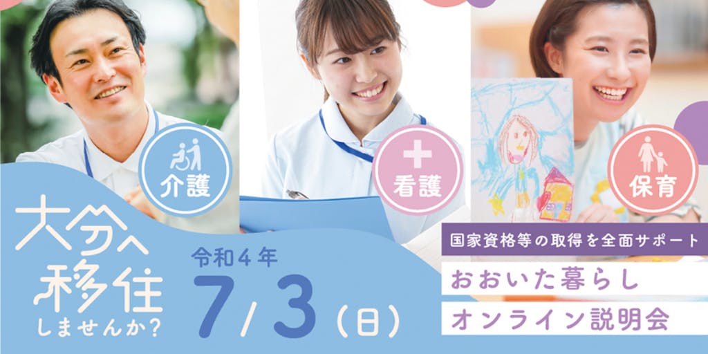 そこで、今年度から大分県への移住と、福祉・医療分野への就職を検討する方を対象に、一生モノとなる資格取得を手厚く支援する制度を新設しました。