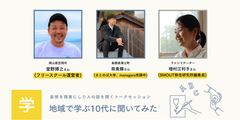 そんな「学」に関する妄想、地域で実現してみませんか? SMOUTがお届けするオンラインイベント「みんなの移住ウィーク2022」では、 妄想を存分に膨らませてもらうべく、夜のイベントプログラムをご用意いたしました!