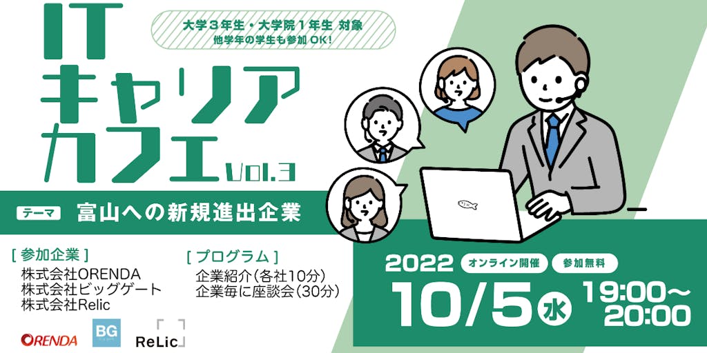 【オンライン開催/参加費無料】富山県のIT企業集合!大学生向けイベント「ITキャリアカフェ」が開催されます!