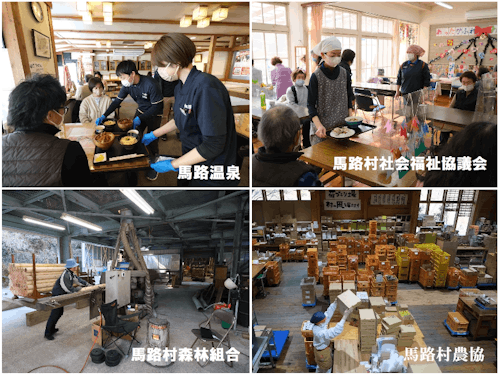 【派遣先の事業所】 ➀馬路温泉 フロント接客、客室清掃・シーツ交換、レストラン接客、厨房で盛り付け・配膳作業 ②馬路村社会福祉協議会 あったかサロンでの昼食時の配膳補助、体操の補助、「地域支援」「訪問活動」などを行い、業務は訪問時に話を聞いたり生活の様子の確認など ③馬路林材加工協同組合 製造に関わる全ての機械の加工補助作業 ④馬路村農業協同組合※繁忙期のみ ゆず生産管理、圃場の整備、ゆず栽培管理等、ゆず収穫、ゆず加工作業(ゆず搾汁工場、相名加工場等)、受注作業(注文入力補助等)、出荷作業(ゆず商品出荷作業補助等)、イベントスタッフ(ゆずはじまる祭、アンテナ店イベント等) ⑤馬路村森林組合 現在は募集がありません ⑥エコアス馬路村 現在は募集がありません