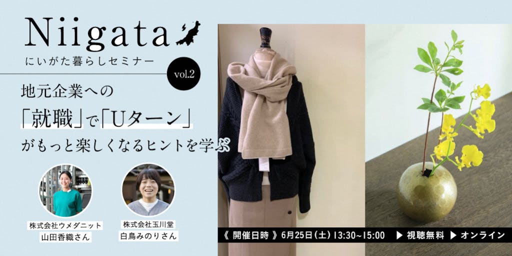 今回の『にいがた暮らしセミナー』では、「Uターン就職」で叶えるジャストフィットな暮らしについて学びます。