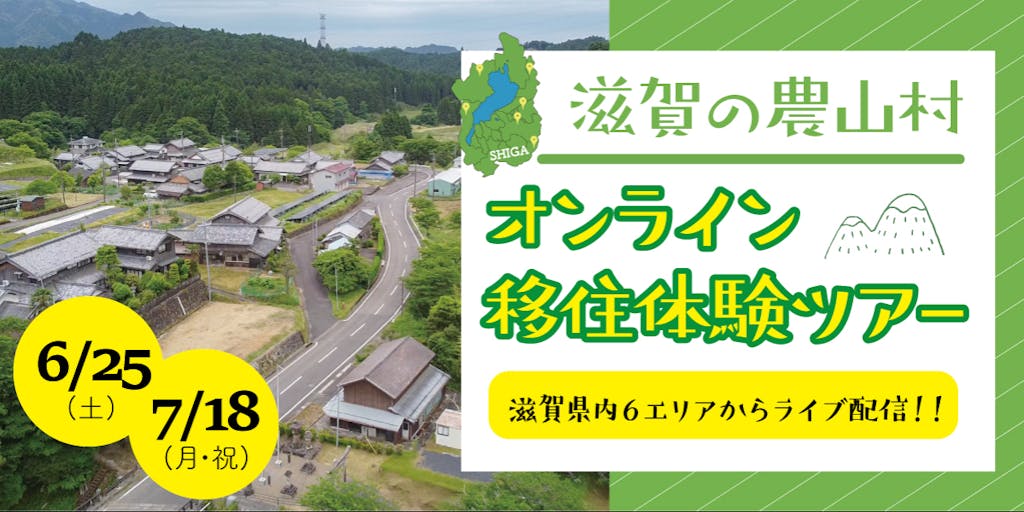また、滋賀県では県内6エリアで2週間程度のお試し移住ができる「農山村お試し移住プラン」も募集中。お試し移住する前に、まずはオンライン移住体験ツアーで現地の様子をみてみませんか?