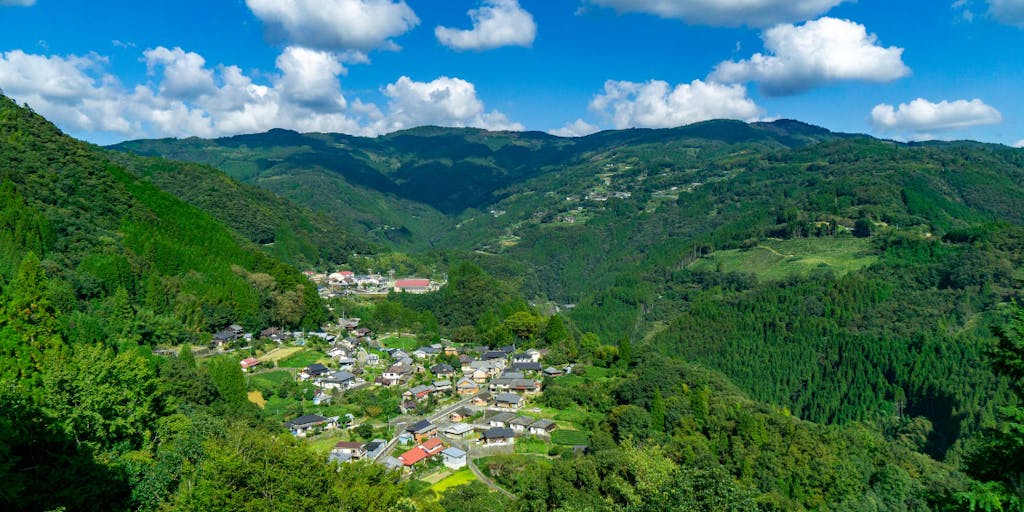 諸塚村は、九州山脈のほぼ中央に位置する人口約1400人の小さな山村です。 村の95%が山林で、宅地と耕地を合わせても1%ほど。 しかし恵まれた森林資源を活かす取組が評価され、FSC®認証や世界農業遺産など世界基準の認定評価を受けてきました。 針葉樹と広葉樹で混生されたパッチワーク模様の山並み、山の恵みを巧みに活用した農林業複合経営、地域コミュニティとしての自治公民館制度、伝統文化の神楽など、ここにしかない景色が広がっています。 お試し滞在を活用した皆さんのご来村をお待ちしています。